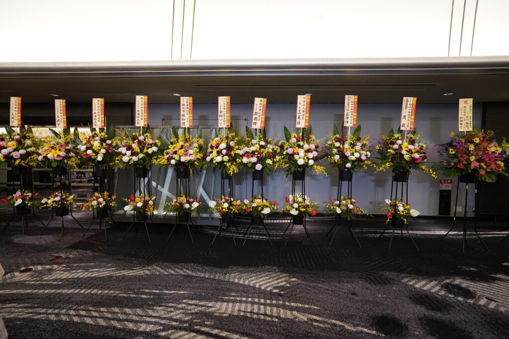 主催者様や関係各所から届いた たくさんのお花 が並び、